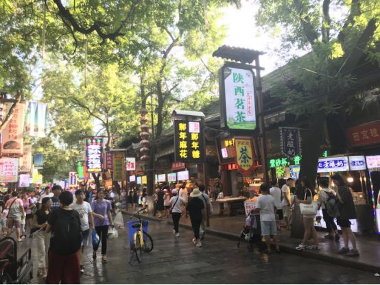 鐘鼓樓廣場(chǎng)在鐘樓和鼓樓之間,被稱為古城西安的“城市客廳”?;孛窠志嘟褚延猩锨隁v史,是西安著名的美食文化街區(qū),街道兩邊都是古色古香的仿古建筑,各種知名的西安小吃應(yīng)有盡有。在各種各樣的特色美食之后,我們也結(jié)束了第一天的行程。
